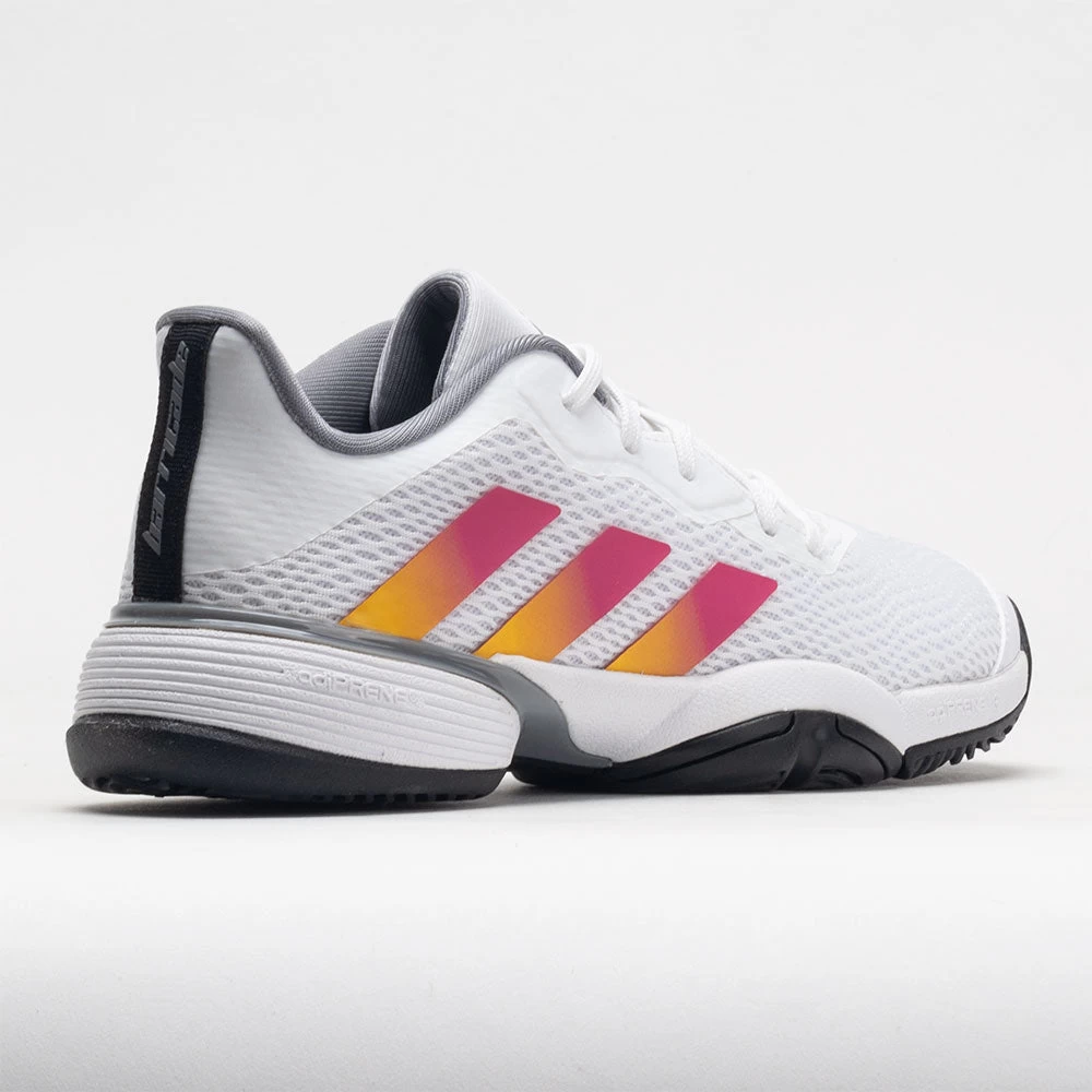The adidas Barricade Junior gives young players the platform for domination. These junior tennis shoes feature an intuitive lacing system that locks you in by pulling down the tongue to match your foot shape. In the heel, a Geofit system helps you feel connected with your footwear. Underneath, a cushioned Adiprene midsole and Torsion System add comfort and stability. Made with recycled materials, the adidas Barricade Junior steps toward ending plastic waste.