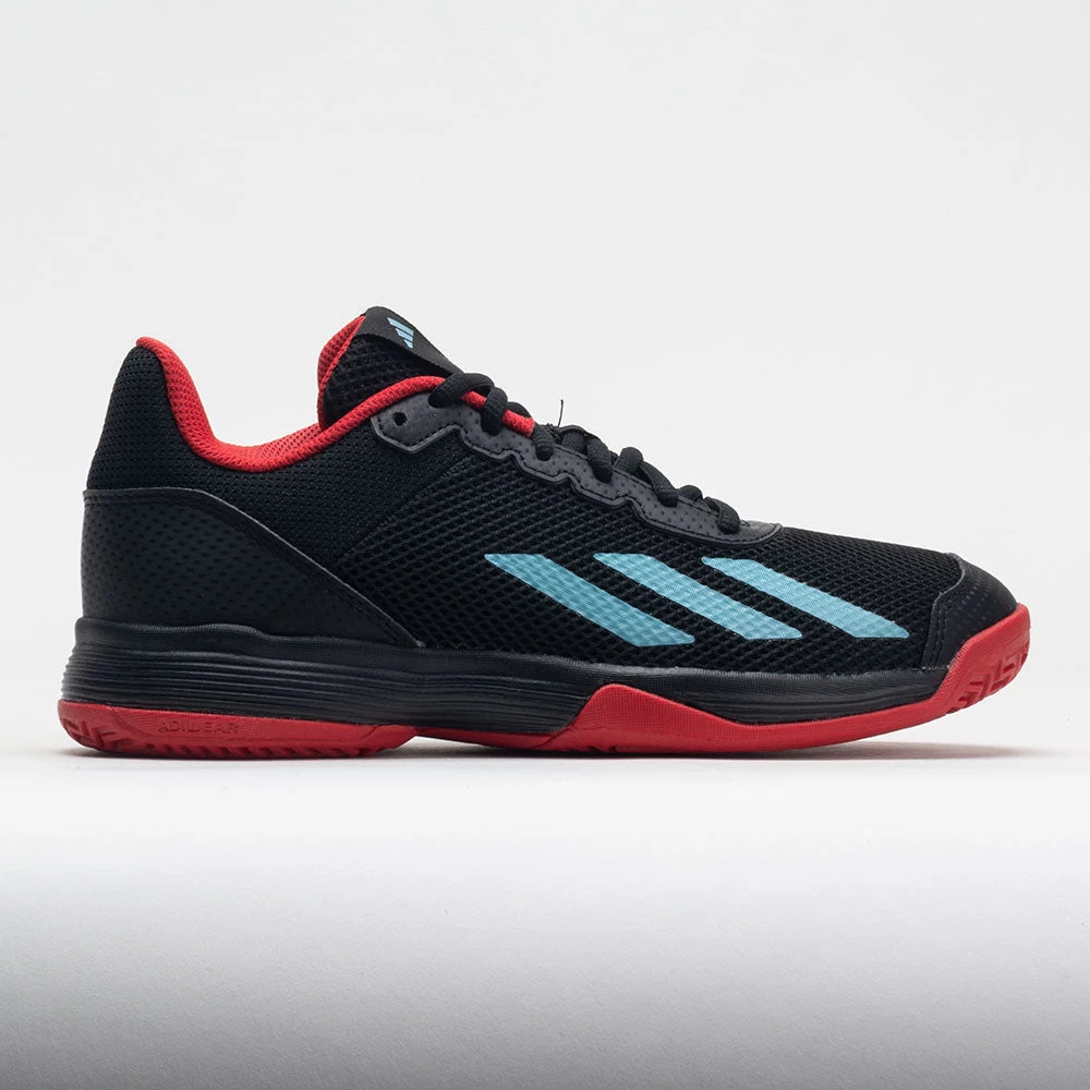 Zip across the court in the adidas Courtflash Junior! Lightweight and comfortable, these junior tennis shoes feature a mesh upper with abrasion-resistant Adituff technology to guard against foot drag. Stay secure and stable at high speeds under the multi-directional Adiwear outsole. Made with recycled materials, the upper includes at least 50% recycled content to help end plastic waste.