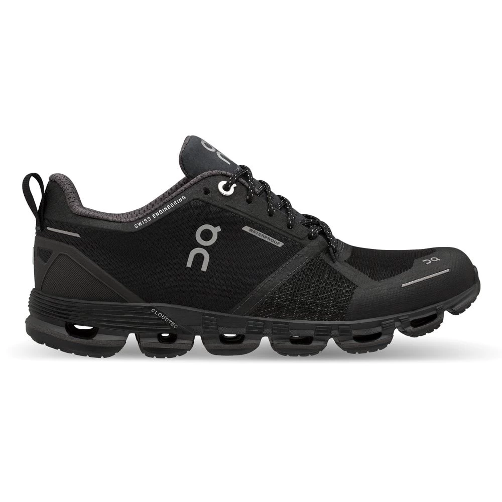 The On Cloudflyer Waterproof takes all the popular features of one of On’s flagship shoes, the Cloudflyer, with the iconic CloutTec cushioning, a fantastically light weight and lugs positioned to help prevent inward rolling (overpronation) and adds a waterproof upper.